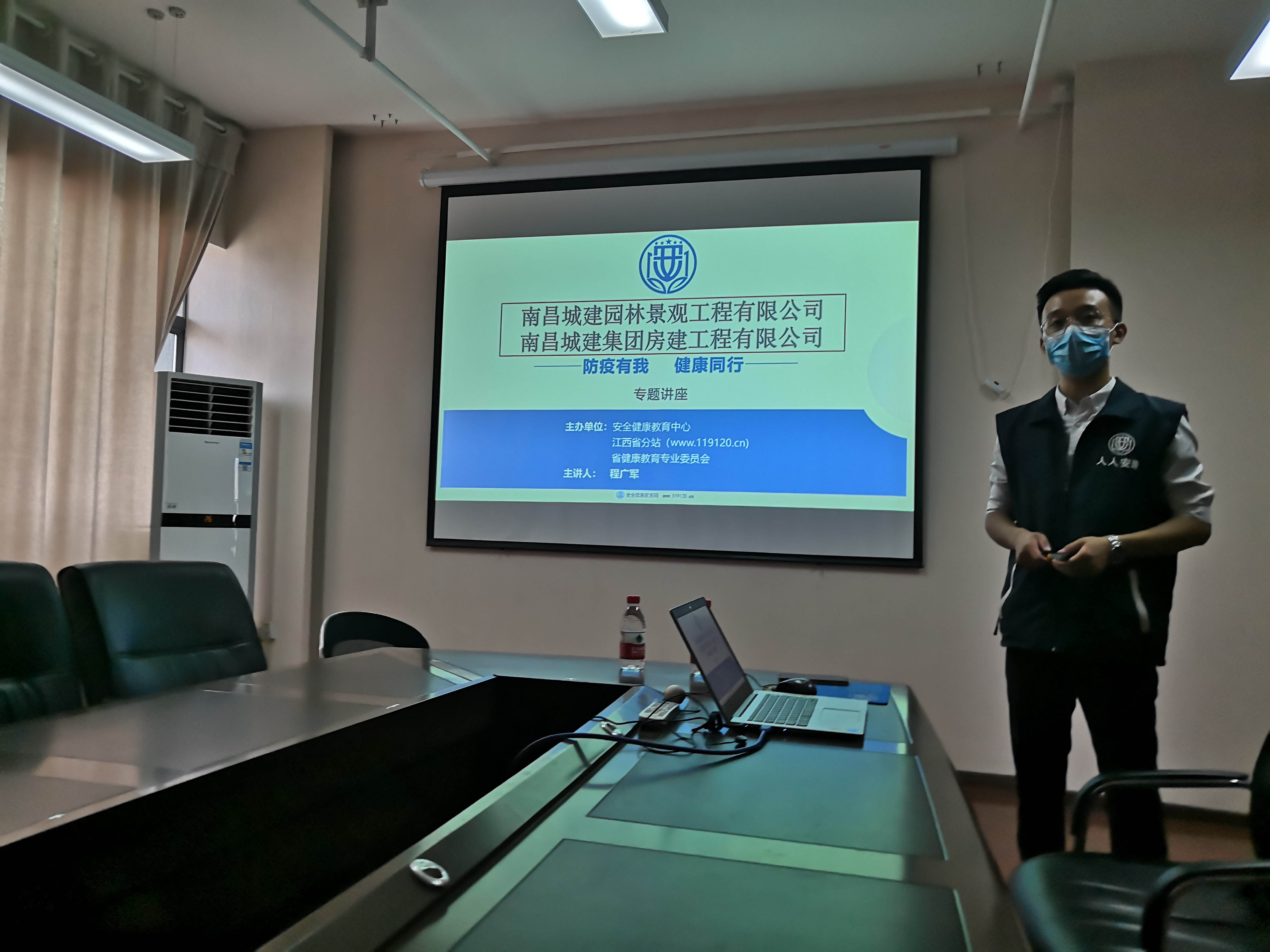 为增强广大员工对公共传染疾病的认知,提高安全防范意识,树立正确的健康观念,南昌城建园林公司与南昌城建房建公司于5月28日共同邀请江西省全员健康教育中心程老师在绿湖豪城会议室举办“防疫有我,健康同行”健康教育讲座。